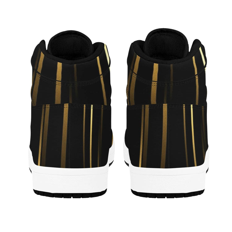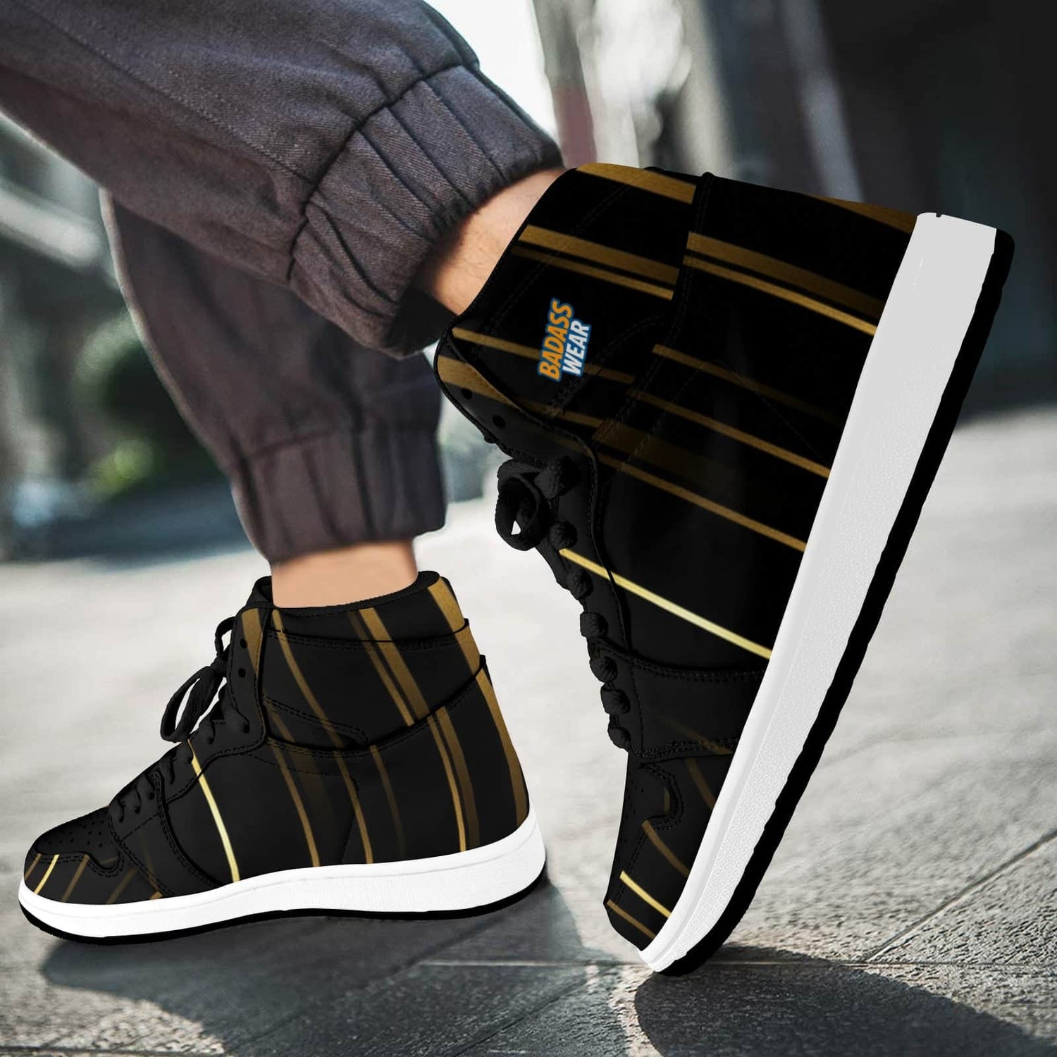 Nosta tyyliäsi näillä kustomoiduilla tuotteilla korkeavartiset lenkkaritYhdistämällä klassisen siluetin rohkeaan, moderniin ilmeeseen, ne ovat täydellinen lisä mihin tahansa. katuvaatteet mallisto. Tyylikästä mustaa pohjaa korostavat dynaamiset kultaraidat, jotka luovat silmiinpistävän, sekä ylellisen että vaivattoman ilmeen.